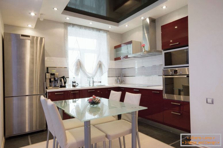 Between the two functional zones a snow-white bar is installed. It can also be used as a dining table.