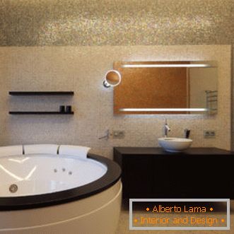 The interior looks like loft, having large free spaces. The house is divided into two internal areas: a checkpoint and a bathroom. At the same time, the bathroom occupies the lower part of the house. The country house, in appearance is light-weight, since it has no bearing walls and only a few columns support the entire structure, instead of walls, large windows, so the house is warm and light. But in my opinion not very comfortable, yet see what happens in your house! Fortunately there are curtains.
