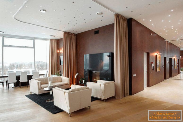 - Free areas, formed due to built-in and functional furniture and the combination of rooms;