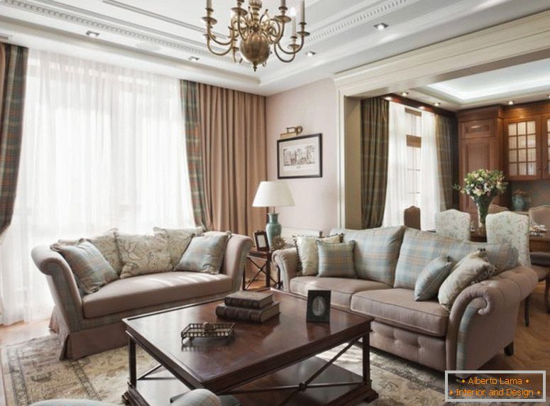 The owner of the apartment is lucky - they are from the floor. In our conditions, this is unrealistic, so we will concentrate our efforts on the selection of curtains. They should have a good length, ideally - if to the very floor. In addition, it is important that they are in harmony with the decor of the wallpaper, and their fabric has a high quality cut.